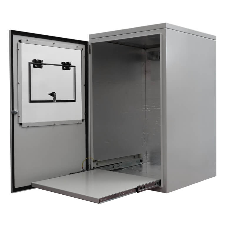Drukarki przemysłowe serii 700 to obudowy do drukarek, które stawia się na podłodze. Wersja ta może być wyposażona w wiele dodatkowych opcji między innymi: wysuwaną półką lub klapkę co ułatwia korzystanie z drukarki. Szafa uszczelniona jest do IP54 oraz wykonana ze stali miękkiej pokrytej farbą proszkową.