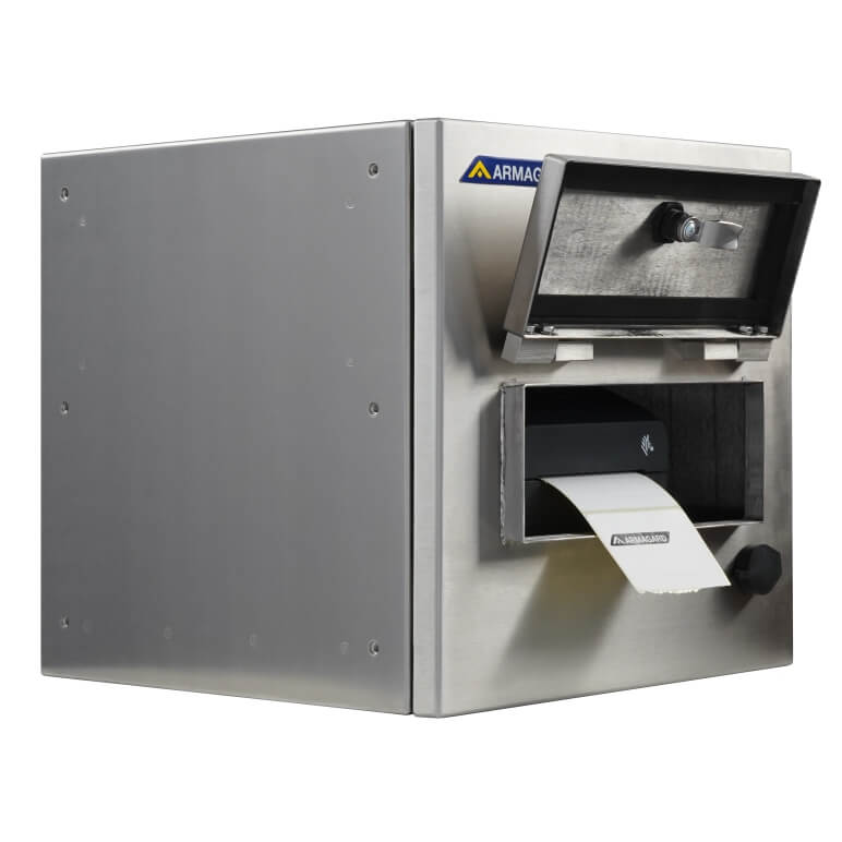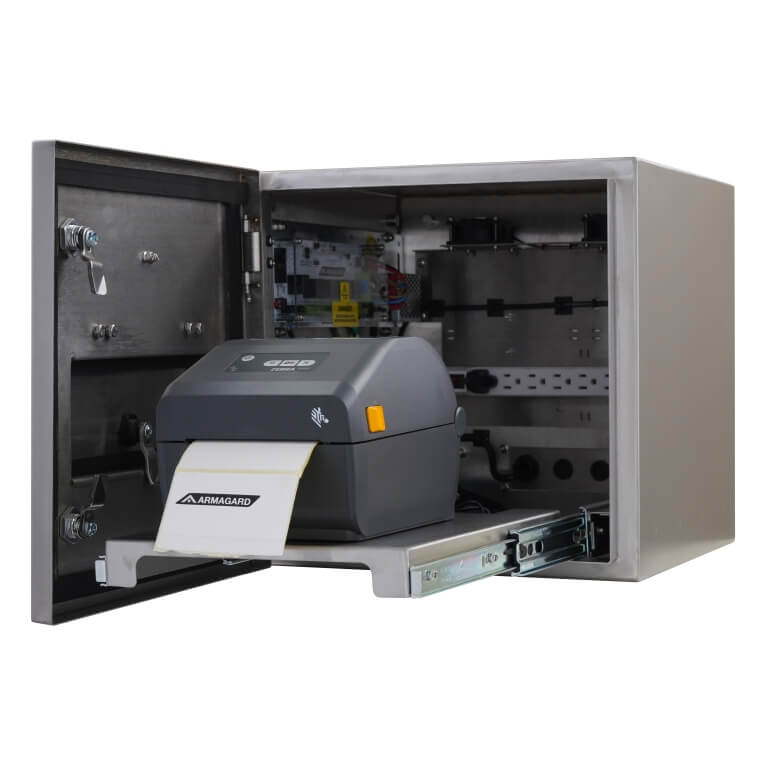 Szafka do drukarek termicznych ze stali nierdzewnej mieści drukarki Zebra ZD, SATO, TSC, Cab MACH 1/2 oraz inne przemysłowe drukarki biurkowe, oferując maksymalną elastyczność (wymiary należy zweryfikować z opiekunem klienta). Dzięki ponad 30-letniemu doświadczeniu Armagard projektuje i produkuje obudowy do drukarek przemysłowych dla firm każdej wielkości, zapewniając niezawodną pracę urządzeń nawet w najtrudniejszych warunkach.
