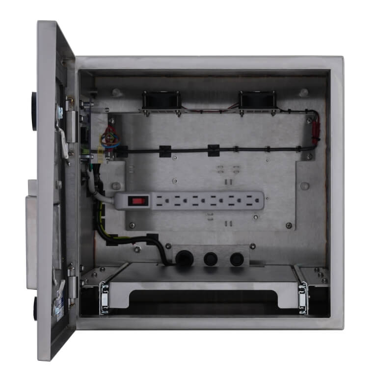 | Wewnętrzne Wentylatory Chłodzące | Wbudowane wentylatory recyrkulacyjne poprawiają cyrkulację powietrza wewnątrz obudowy, regulując temperaturę i zmniejszając ryzyko przegrzania w cieplejszych warunkach pracy. |