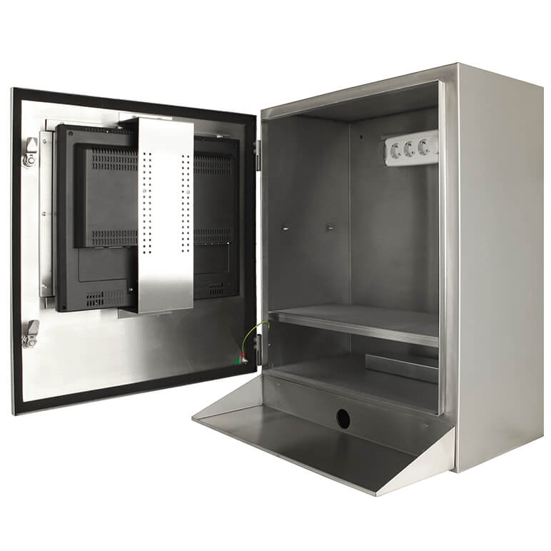 Szafa na komputer INOX SENC 700 została zaprojektowana do ochrony komputerów typu tower lub stacjonarnych oraz ekranów TFT LCD (w tym ekranów dotykowych dostarczonych przed Nas) o przekątnej do 19". Obudowa może być wyposażona w membranową klawiaturę typu„ klin ”ze zintegrowaną myszą albo dostarczaną z lub bez tradycyjnej półki na klawiaturę i mysz.