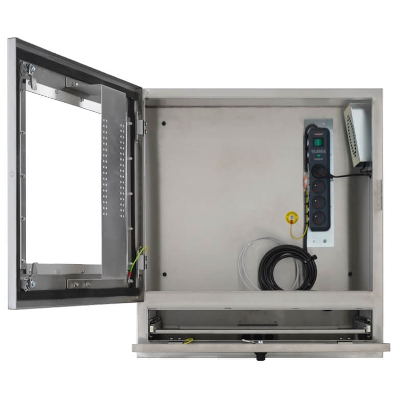 Szafa na komputer ze stali nierdzewnej SENC 400 do monitora do 22", komputera i klaiwtury, którą można zamknąć w szafce. Wyprodukowana ze stali nierdzewnej 316 ( stal spożywcza). Szafa na komputer ze stali nierdzewnej może być zawieszona na ścianie lub zamocowana na stojaku.