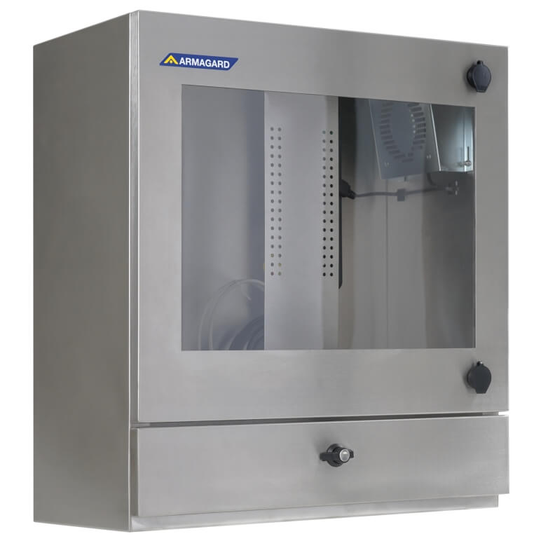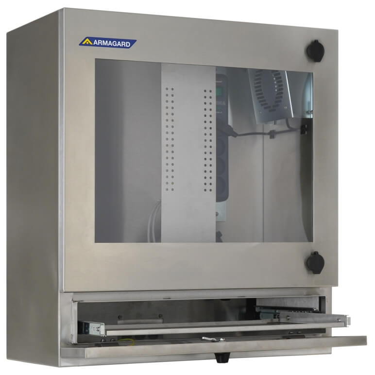 Stopień ochrony IP65 chroni przed wodą, kurzem, brudem, olejem, odziaływaniem fizycznym i kradzieżą, Wodoodporna szafa ze stali nierdzewnej Armagard świetnie sprawdza się do ochrony sprzętu w mokrych i wilgotnych środowiskach oraz tam gdzie higiena pomieszczenia odgrywa ważną rolę, Znajduje zastosowania w medycynie oraz przy produkcji żywności.
