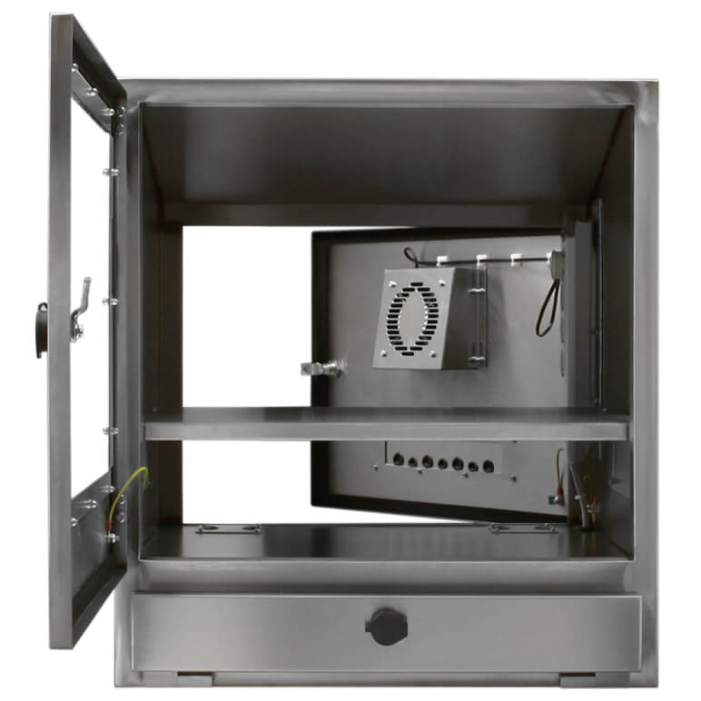 SENC-800 obudowa PC i monitora ze stali nierdzewnej przeznaczona jest dla komputerów stacjonarnych. Ta uszczelniona do IP 65 obudowa komputera i monitora przeznaczona jest do szerokiej gamy rozwiązań stacjonarnych i ekranu (do 19 cali, płaski ekran i CRT). Wodoodporna obudowa komputera wykonanna jest z najwyższej jakości stali nierdzewnej. Obudowa może być używana z konwencjonalną klawiaturą i myszką, które mogą być umieszczone na załączonej standardowo przesuwanej półce.