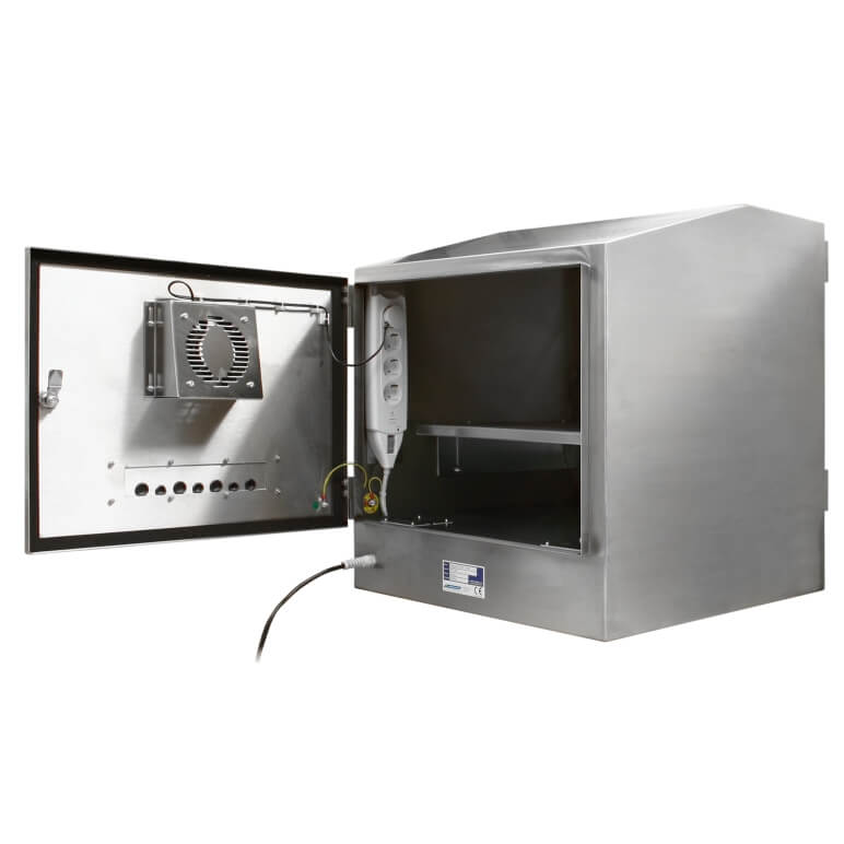 IP65 SENC-800 wodoodporna obudowa komputera jest idealnym rozwiązaniem do ochrony sprzętu w wilgotnym środowisku. Doskonale sprawdza sie przy produkcji żywności i napojów w całej Europie, mieści standardowej wielkości komputer i monitor.